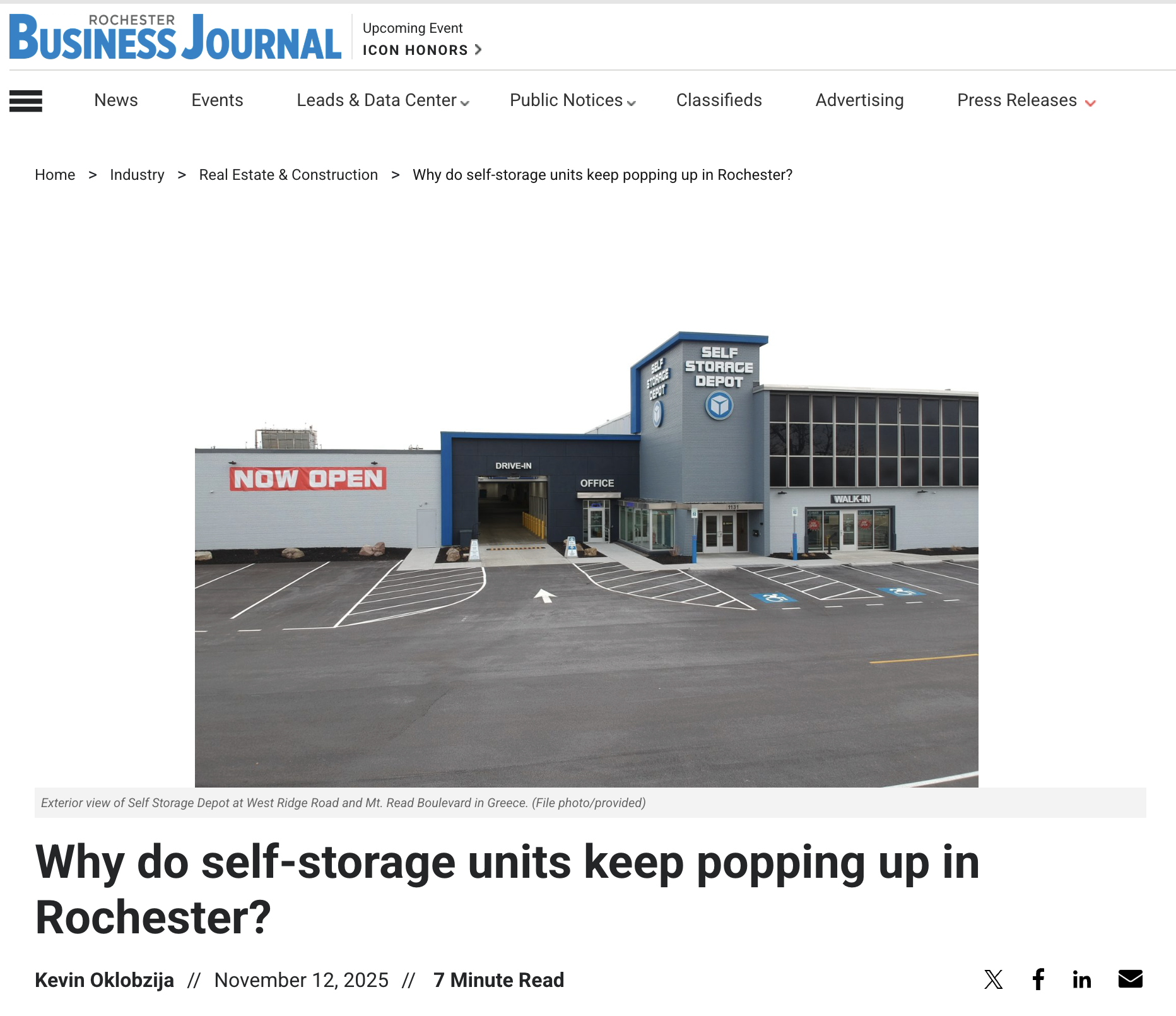 For developers, investors or property owners exploring self-storage in the Rochester/Monroe County region (or beyond), the RBJ article reinforces that: